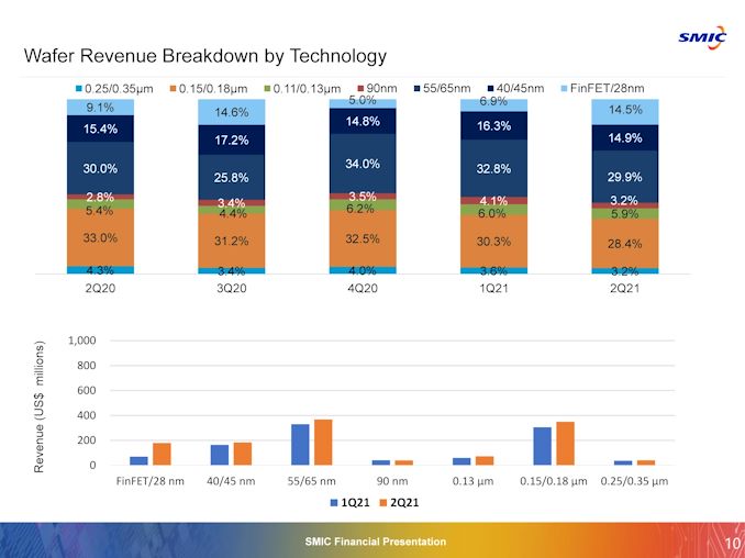 Based on SMIC’s financial report for Q2 2021, demand for its 28 nm technology has been fluctuating in the recent quarters, whereas demand for its 14 nm FinFET technology remained at a rather low level. It’s worth noting that SMIC isn’t the major 28nm player in China here – TSMC and UMC lead the market. But as more applications migrate to this node, demand for chips is increasing, and SMIC’s 28 nm will account for a larger portion of its revenue, which is growing despite its restrictions.