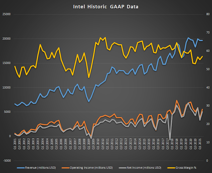 Intel’s famed gross margin has also recovered on both a quarterly and yearly basis. At 57.1% it’s up almost 2 percentage points higher than Q1, and almost 4 percentage points higher than Q2’20. Intel’s gross margin has been subject to greater than usual fluctuations as of late – typically dropping whenever a major new product is ramping – but at least for Q2 it is on the rise as Intel enjoys a very profitable quarter.