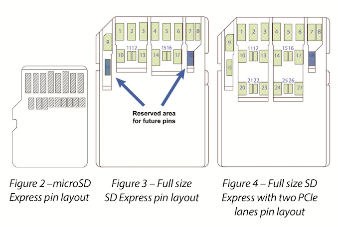 In 2018, version 7.0 of the SD specification introduced the PCIe and NVMe-based SD Express interface as the new way forward for SD cards. The older UHS-II and UHS-III interfaces developed in versions 4 through 6 of the SD standard and capable of speeds from 156 MB/s to 624 MB/s were abandoned in favor of a single lane of PCIe gen3 (~985 MB/s). Last year, version 8.0 of the SD specification added support for PCIe gen4 speeds and a second PCIe lane, bringing the theoretical maximum transfer speed up to almost 4 GB/s.